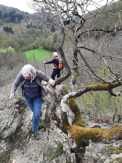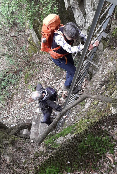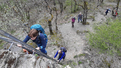 De wandel-5-daagse zit er op. De 11de door Frans georganiseerde reis. Ondanks redelijk pittige tochten waren alle deelnemers enthousiast over het afwisselende wandelgebied met ook de nodige bezienswaardigheden en enkele technische uitdagingen (een 360 meter lange en 100 meter hoge "touw"brug, diverse "Klettersteigs" met ladders, beugels e.d.). Vermeldenswaard is, dat een flink deel van de deelnemers (meer dan de helft) nog niet eerder Klettersteig-achtige passages had gedaan. Zij hebben nu dus kennis kunnen maken met ladders, beugels en kabels; overigens zonder dat helm en zelfzekering daarbij nodig was. Voor een aantal was het toch wel een uitdagende onderneming! Ook de flora en fauna was zeer de moeite waard. In totaal zijn in de 5 wandeldagen 101 km's afgelegd, 3.420 hoogtemeters bedwongen (op én af) en zijn we 23 uren in beweging geweest. Enkelen hebben de technische uitdagingen via een "Umgehung" kunnen passeren. Het hotel was zeer goed: prima en ruime kamers en sanitair, uitstekend en overvloedig eten, ook voor de vegetariërs en lactosevrijen, en een zeer flexibele en klantgerichte opstelling. Mede gezien de prijsstelling een adres om te onthouden! We hebben het evenement afgesloten in een Cafe/Konditorei met koffie en gebak op kosten van de NKBV, hetgeen wederom zeer is gewaardeerd. Ook het weer was - ondanks veel voorspelde regen - prima. Alleen op maandag even een klein buitje. Al met al was het een gezellige en geslaagde activiteit.