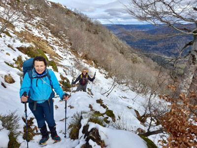 Veel sneeuw lag er niet, maar de wandelingen waren perfect. Lekkere klimmetjes, prachtige vergezichten. Een reuze gezellige groep. Klaartje, Ruud en Adèle maakten er een trektocht van. 2 nachten in een basic hut. De anderen genoten 's avonds van douches, een heerlijk diner en drankjes.