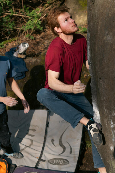 Het was een geslaagd dagje boulderen in Glees. We kwamen rond half 12 aan op de parking. Vanuit daar is het nog 15-20 minuutjes lopen naar de rotsen. Die liggen in een bosrand, net een stukje lager dan het plateau van waaruit je ze benaderd. Gelukkig hadden we lekker weer; er was genoeg zonneschijn om het (zelfs onder het bladerdek) niet koud te hebben. We hebben drie verschillende sectoren van het gebied bezocht, en zijn rond 6 uur vertrokken om nog even samen iets te eten, en daarna terug naar huis te rijden.