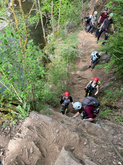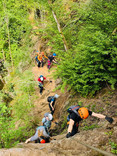 Begin Mei toog een grote groep klimmers naar Manderscheid. De klettersteig en het mooie weer zorgde voor een prachtige dag. Manderscheid kent voldoende uitdagingen om ook ervaren klimmers bezig te houden. Meer informatie over de klettersteig vind je hier: https://nkbv.nl/actueel/blog/burgenklettersteig-manderscheid-in-de-eifel.html