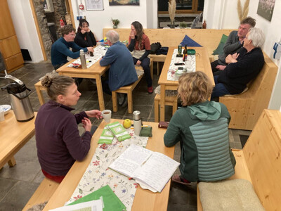 Doen en doorgaan – op kompas door de Eifel. Onder het motto ‘Doen en doorgaan’ hebben 12 leden begin februari in vier dagen de Eifel doorkruist. Gewapend met kaart en kompas, leerden zij van begeleiders Jan en Geert hoe je een bergtocht plant en uitvoert. Het werd een geslaagd weekend: veel geleerd, veel gelopen en veel verhalen uitgewisseld. En hartje winter twee dagen met stralend weer is echt een cadeautje. Deze tocht was bedoeld voor ervaren wandelaars die hun tochtvaardigheden willen versterken. Omdat je in de bergen altijd moet kunnen terugvallen op de basis, stonden kaart en kompas centraal. Nu kunnen de deelnemers het weer: zonder telefoon of gps je weg vinden in onbekend gebied. Tijdens oefeningen, uitlegmomenten en zelf uitgezette tochten van hut naar hut, kwamen ook allerlei andere aspecten van een bergtoer aan bod. Hoogtepunten waren (uiteraard) de gezellige avonden in hutten van onze zusterverenigingen DAV Aachen en DAV Eifel. Onze eigen huttenwaard Marc heeft ons van voortreffelijke maaltijden voorzien en met ‘ein grosses Weizen’ erbij kan het niet meer stuk. Dieptepunt was de ontdekking dat de ‘hut’ die het einddoel van een lange wandeldag zou vormen, slechts een schuilhut bleek. Bel de huttenwaard als je dan raad nodig hebt. De juiste coördinaten kunnen we inmiddels keurig op de kaart uitzetten. Nog vier kilometer erbij dan voor dat glas bier… Een tocht kan altijd anders lopen dan je hebt gepland, doen en dóórgaan. In september lopen we in hetzelfde gebied weer een tocht, nu voor bergwandelaars met wat minder ervaring. We geven een goede indruk van wat er bij een echte huttentocht komt kijken, op een uurtje rijden over de grens.